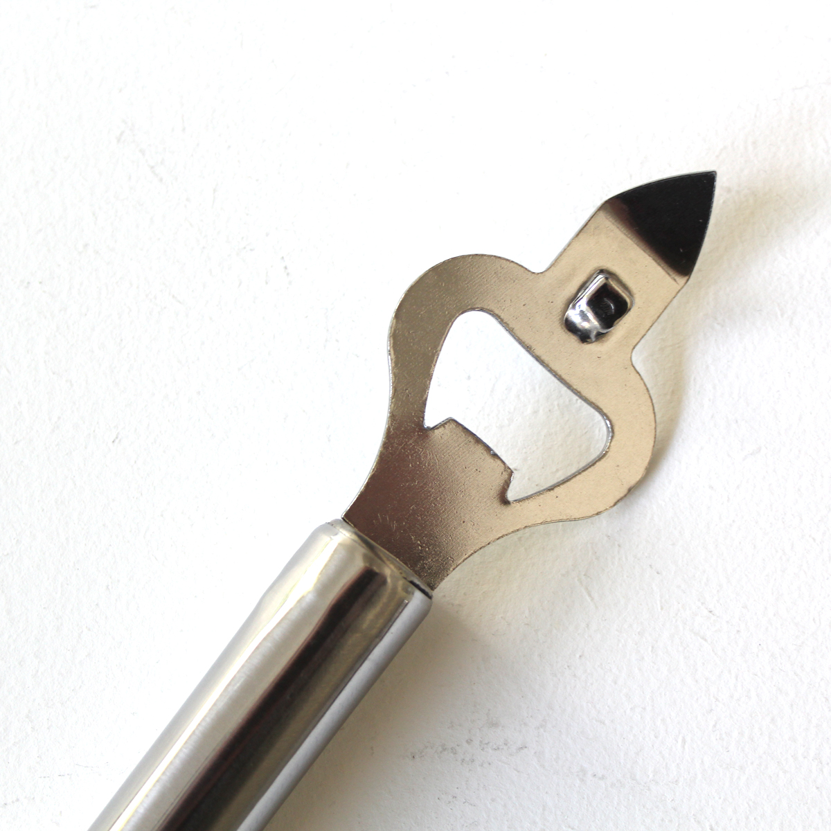 Flessenopener voor het openen van flesjes het materiaal is rvs en heeft een lengte van 16 cm waardoor hij gemakkelijk in de hand ligt.